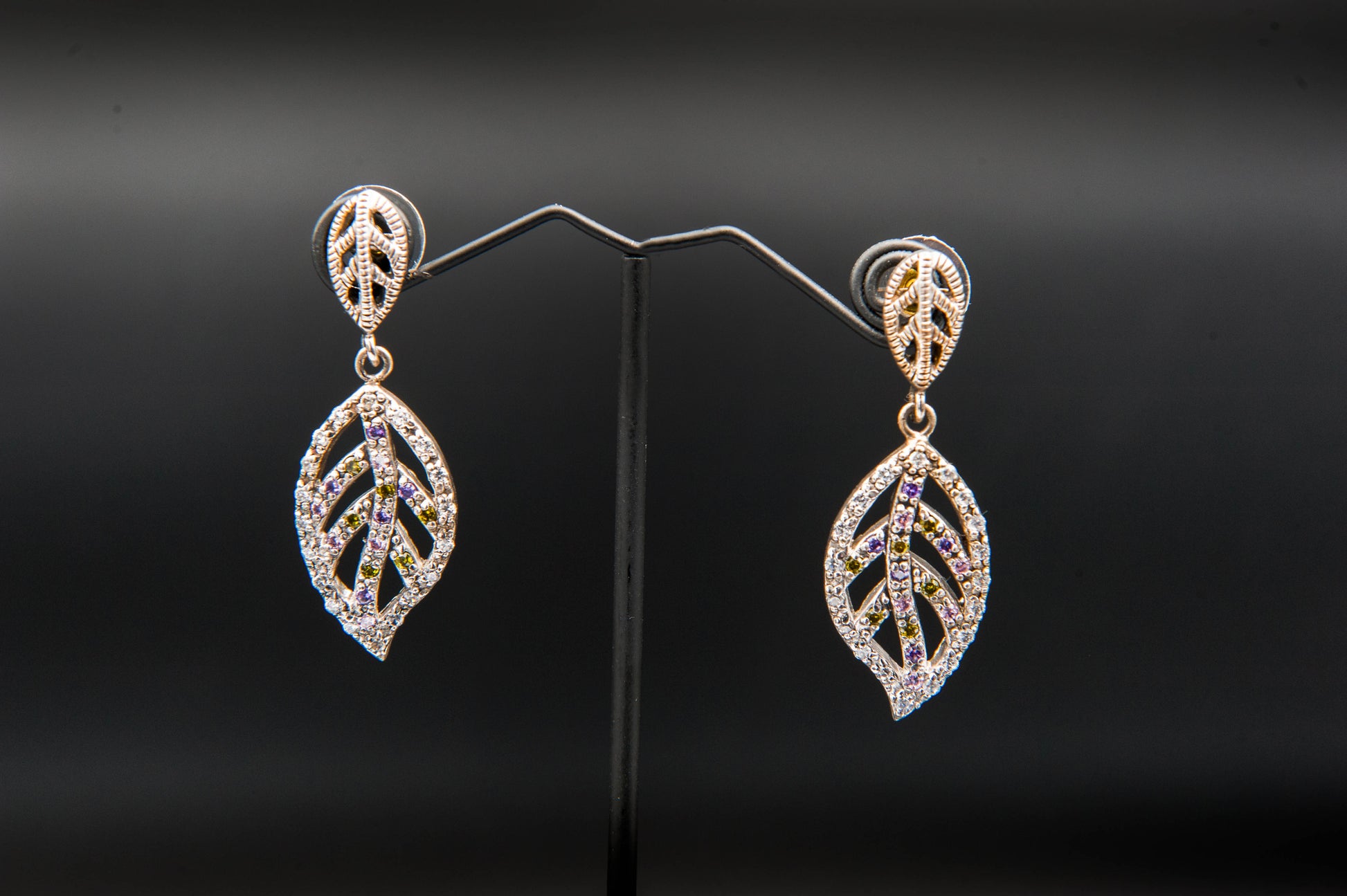 Delicate as dawn’s first shimmer, the Aurora Leaflight earrings capture nature’s grace in a cascade of golden filigree. Each leaf-shaped drop is pierced with intricate cutouts and adorned with a constellation of sparkling gemstones in soft hues of amethyst, citrine, and crystal. The metallic finish glows with warmth, while the symmetrical design evokes balance and refinement. These earrings are a radiant choice for those who seek elegance with a touch of whimsy.