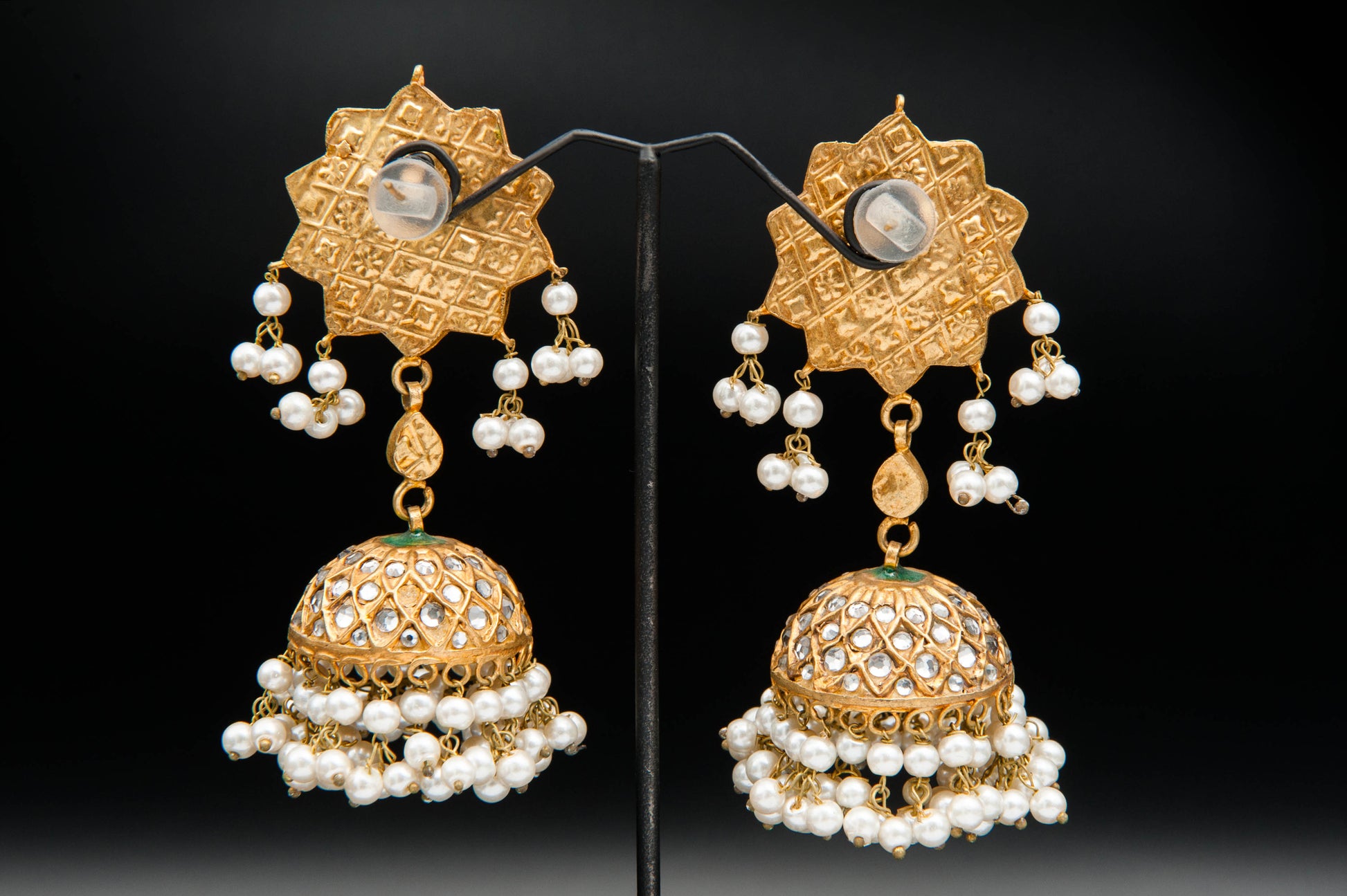 Pearl Bloom Jhumka-Kundan Jhumkay